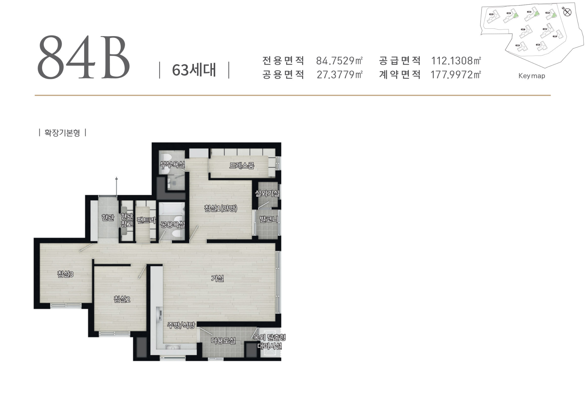 - 비확장형 평면도, 확장기본형 평면도, 각 옵션별 평면도의 스케일은 상이하며 실제 스케일은 견본주택에서 확인하시기 바랍니다.